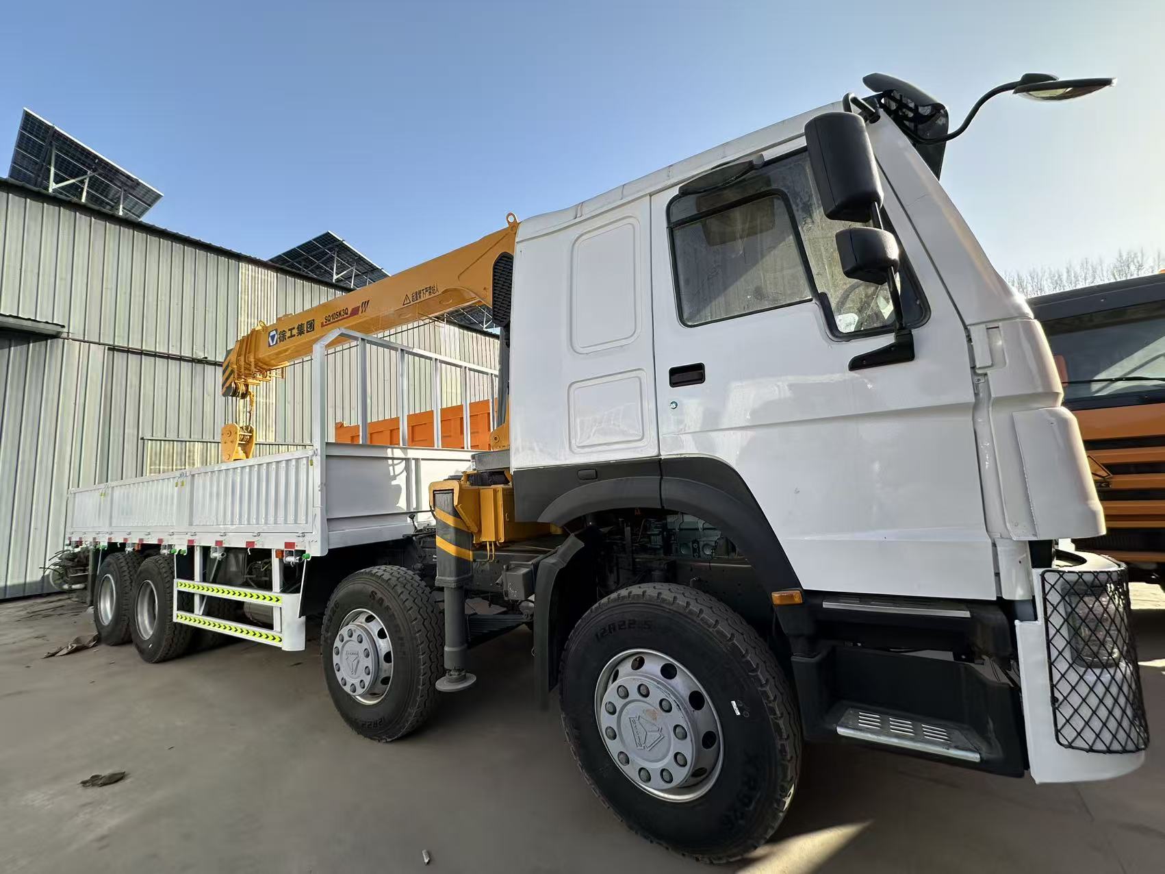 Плоский транспортный автомобиль Howo 8×4 с гидравлическим стрелочным краном
