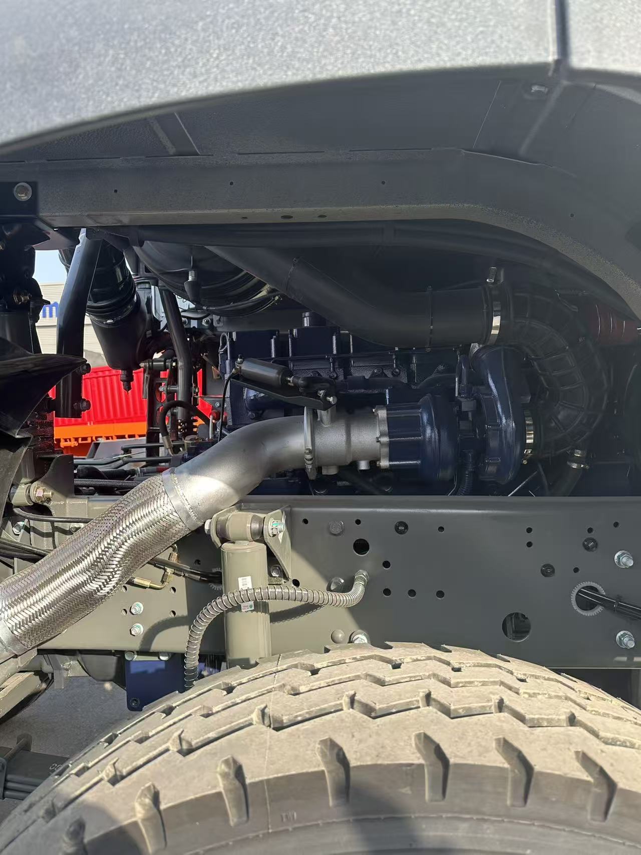 • использование шасси тяжелого грузового автомобиля, оснащенного открытым задним опрокидывающим ковшем, ковш изготовлен из высокопрочной стали, адаптирован к потребностям перевозки тяжелых грузов; Передняя установка защитной сетки, шины для спецификации инженерной нагрузки, адаптация площадки, шахты и других сложных дорожных условий.