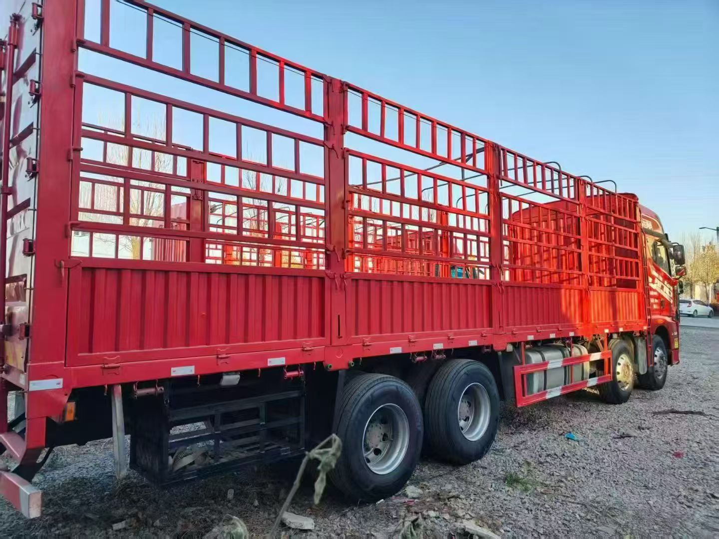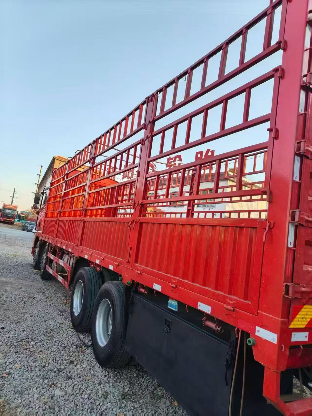 ◦Кузов с красным покрытием, оснащен многоосным тяжелым шасси, шины для специальных спецификаций для грузовых перевозок, с учетом несущей способности и стабильности движения.